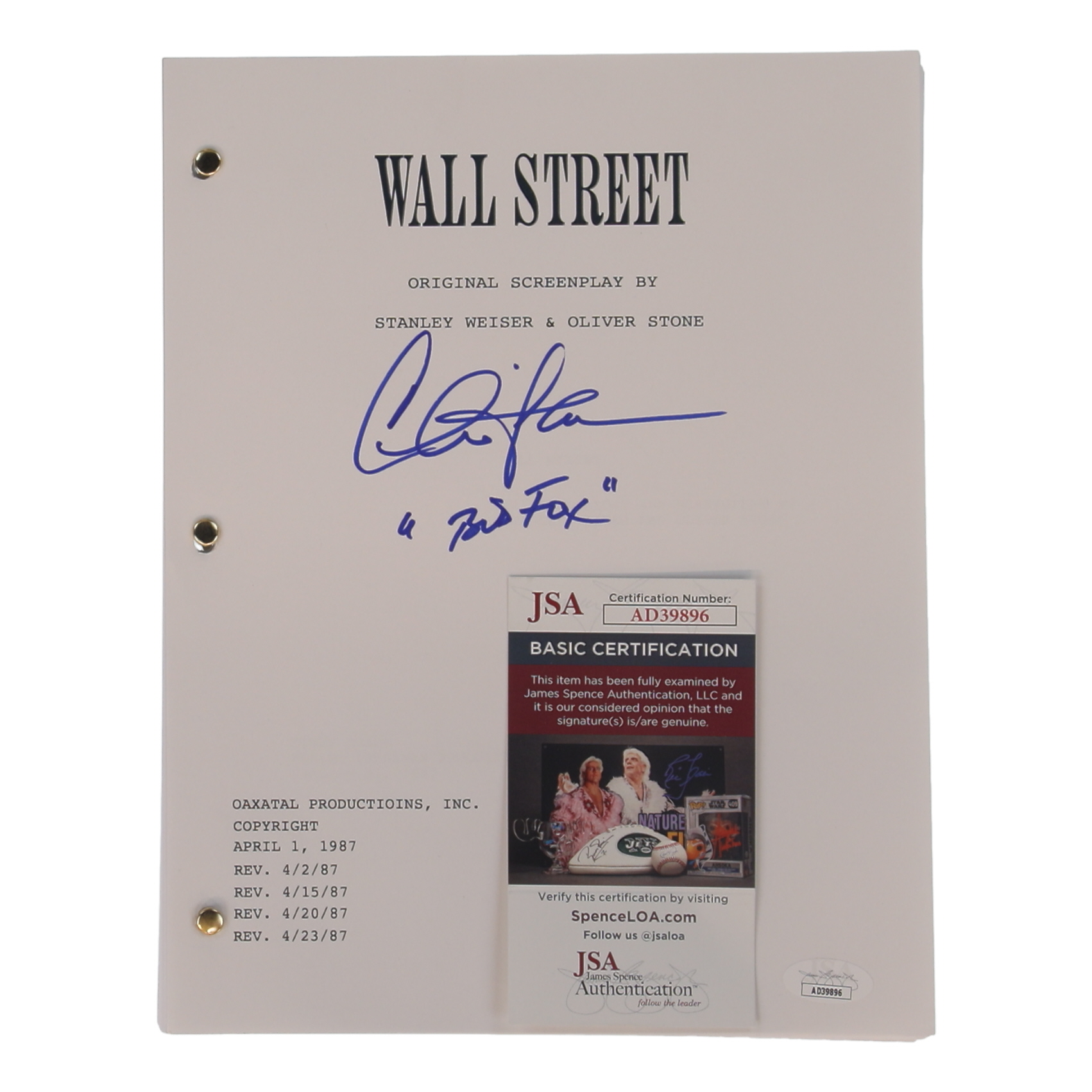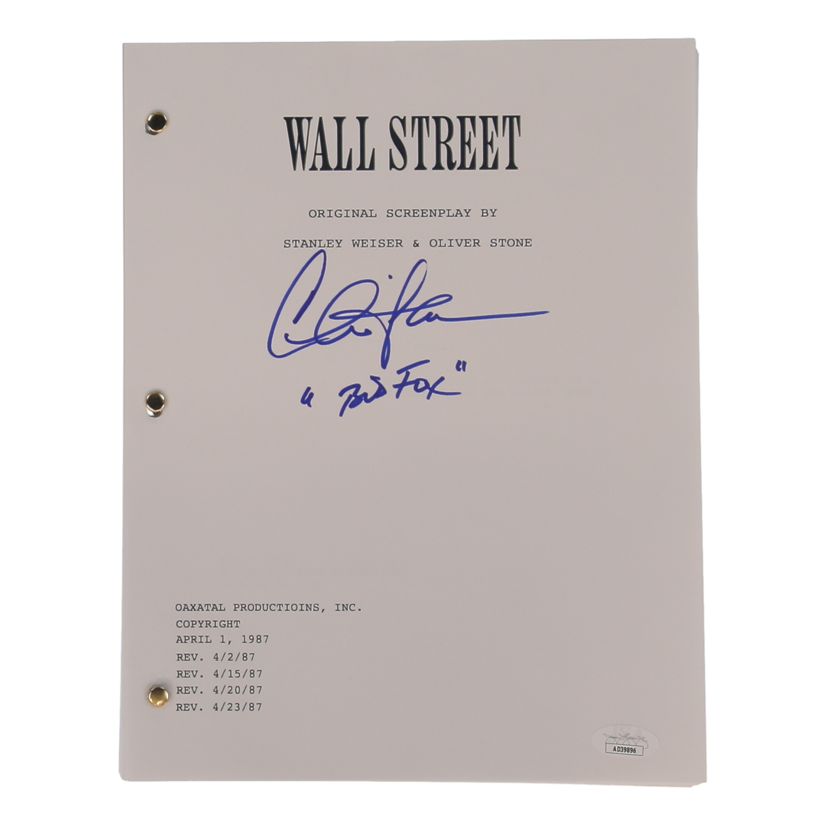 Charlie Sheen Signed "Wall Street" Movie Script Inscribed "Bud Fox" (JSA)