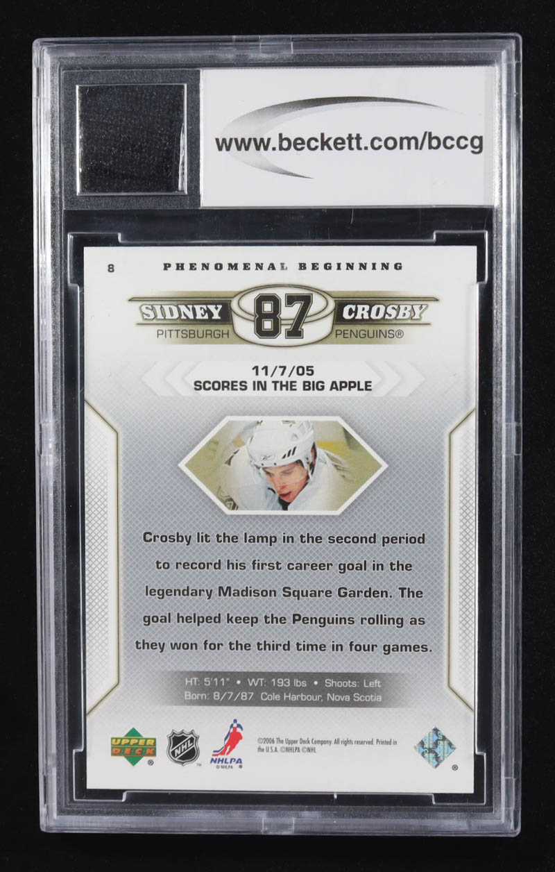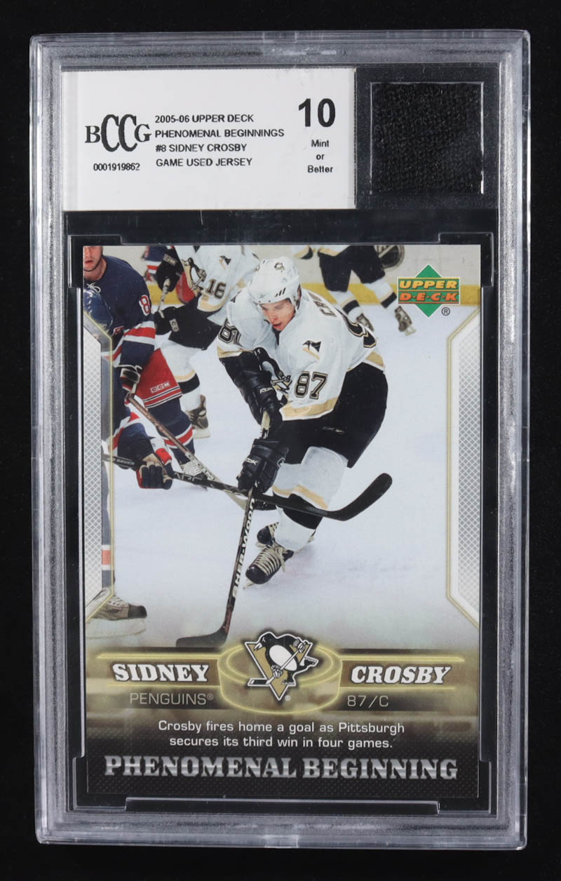 Sidney Crosby 2005-06 Upper Deck Phenomenal Beginnings #8 RC with Game Used Jersey Piece (BCCG 10)