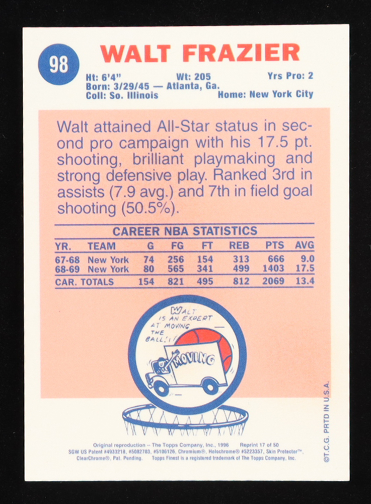 Walt Frazier 1996-97 Stadium Club Finest Reprints #17