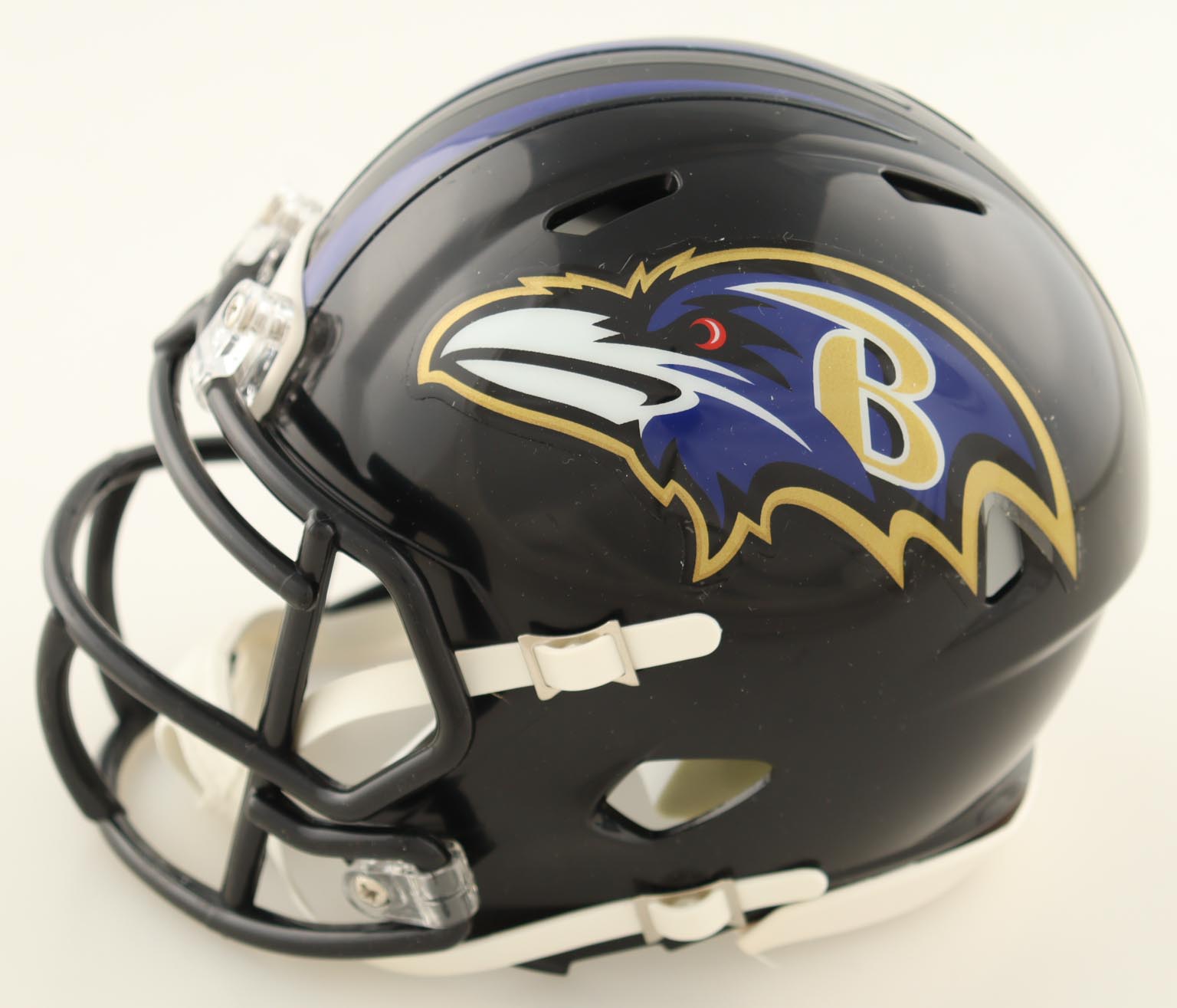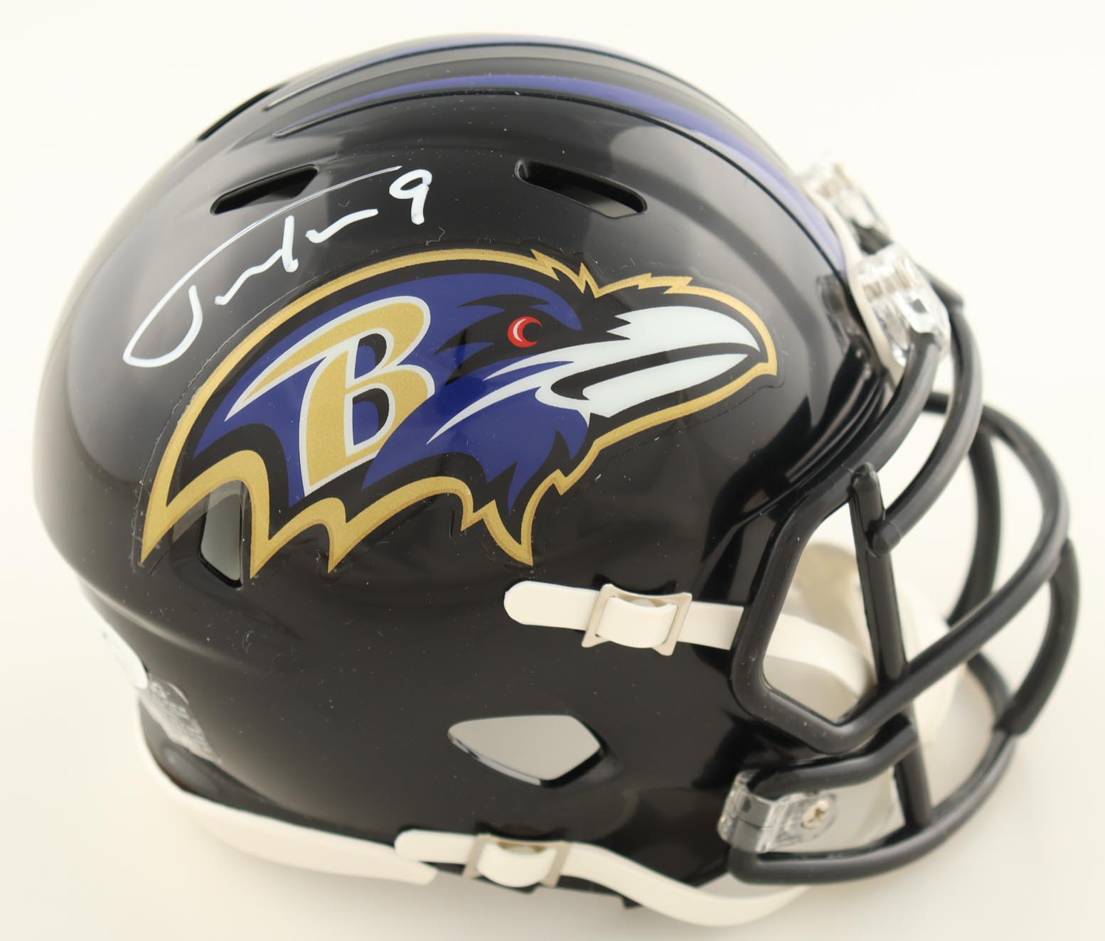 Riddell Baltimore Ravens Speed mini helmet. Hand-signed by Justin Tucker.