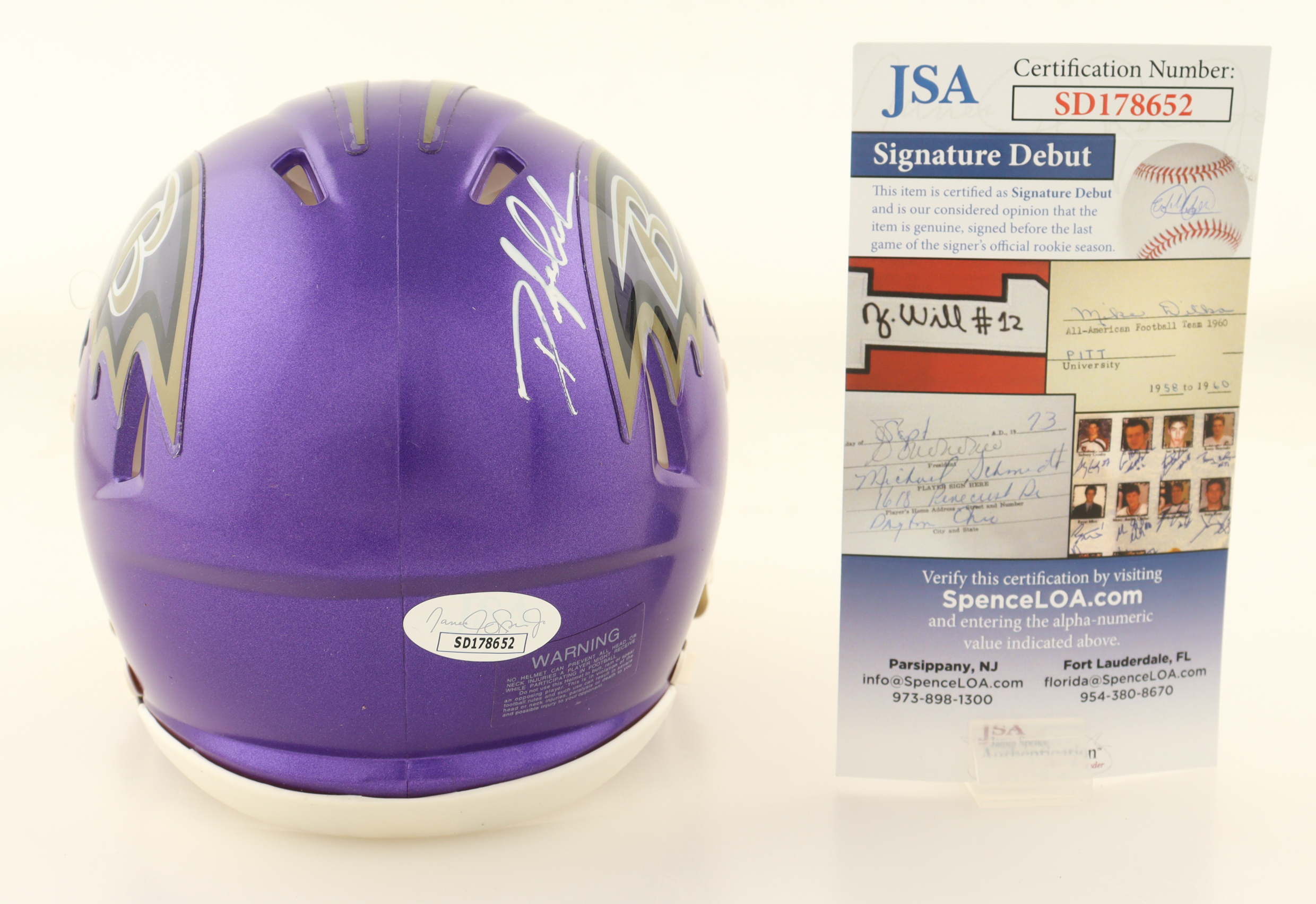 Riddell Baltimore Ravens Speed Flash Alternate mini helmet. Hand-signed by Odafe Jayson Oweh.
