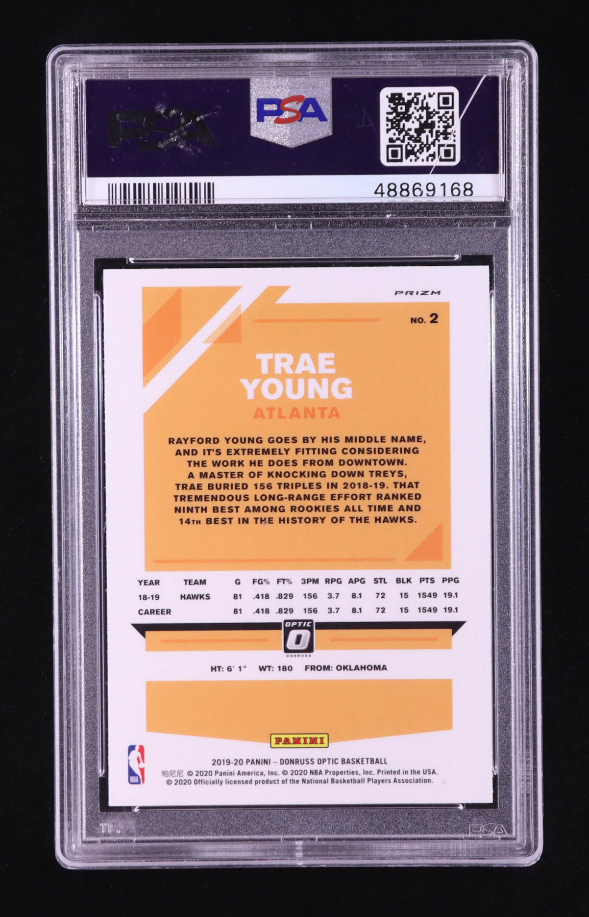Trae Young 2019 Donruss Optic Blue Velocity #2 (PSA 9)