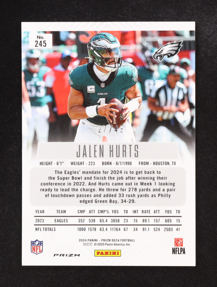 Jalen Hurts 2024 Panini Prizm Deca Prizms Orange #245 #27/49