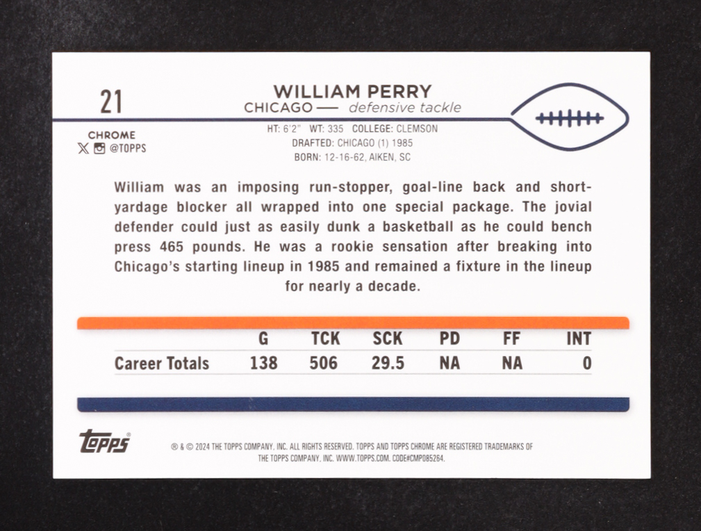William Perry 2024 Topps Chrome Gold Geometric Refractors #21 #36/50