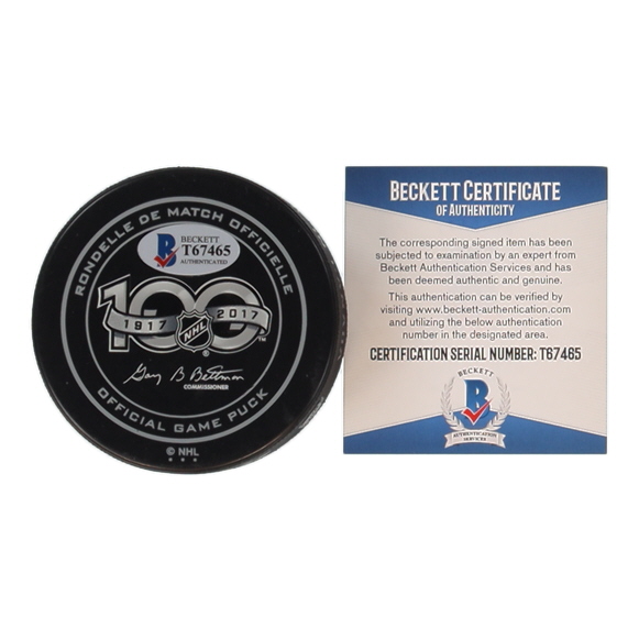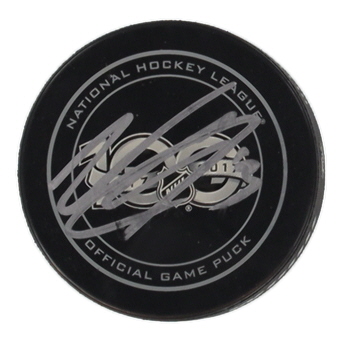 Nico Hischier Signed NHL 100th Anniversary Logo Hockey Puck (Beckett)