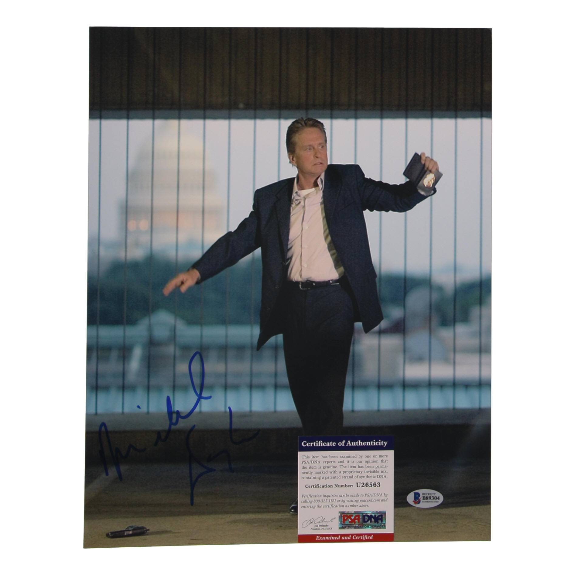 Photo measures 11" x 14" in size and has been hand-signed by Michael Douglas.