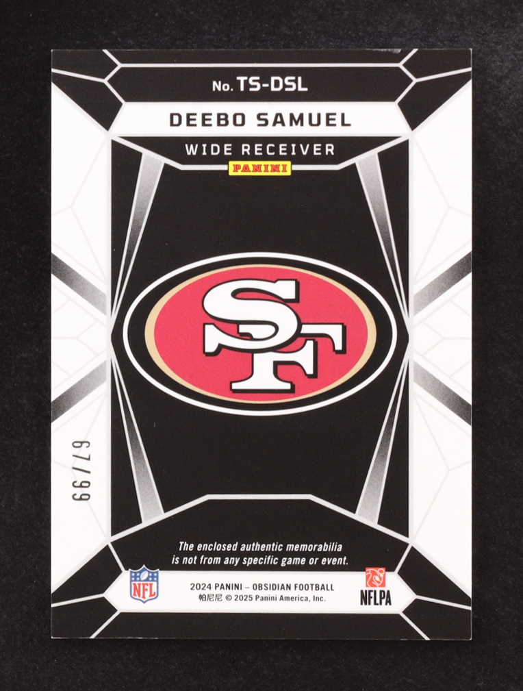Deebo Samuel 2024 Panini Obsidian Trifecta Swatches Silver #37 #67/99
