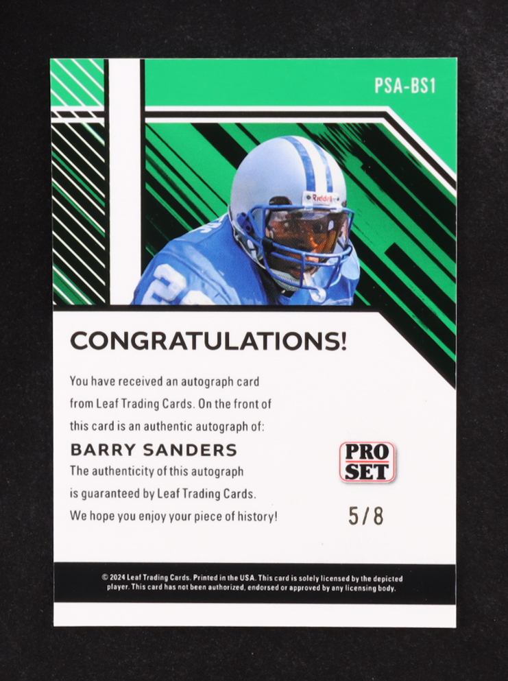 Barry Sanders 2024 Leaf Pro Set Autographs Orange Shimmer #PSABS1 #5/8