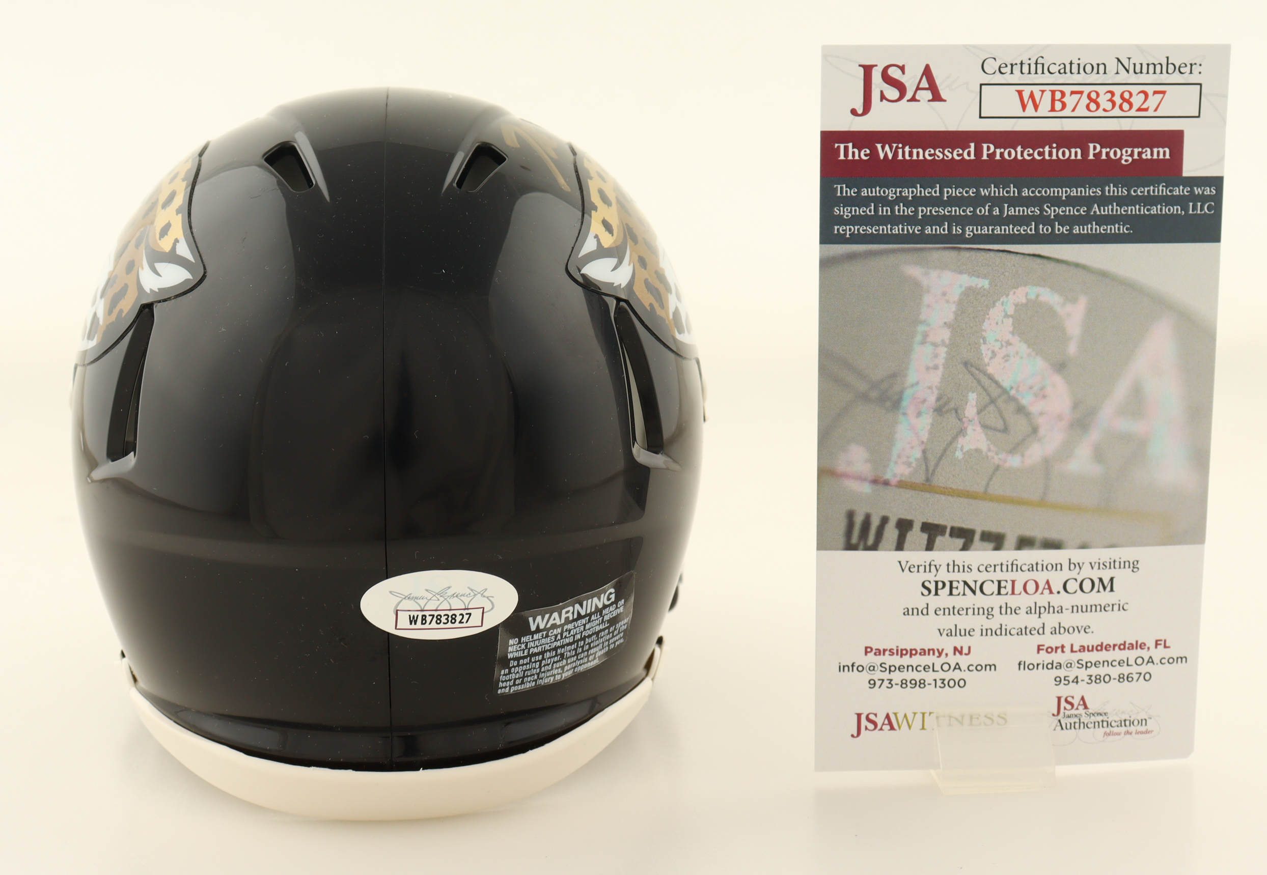 Riddell Jacksonville Jaguars Speed mini helmet. Hand-signed by Tank Biggsby.