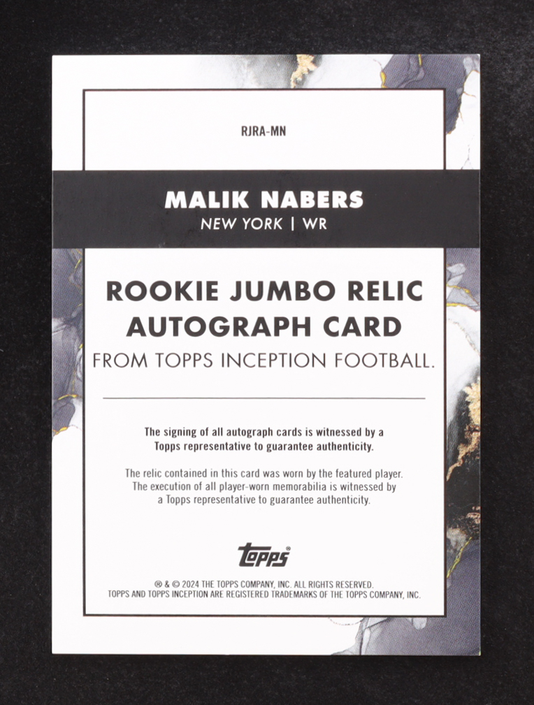 Malik Nabers 2024 Topps Inception Rookie Jumbo Relic Autographs Green #RJRAMN #037/150 RC