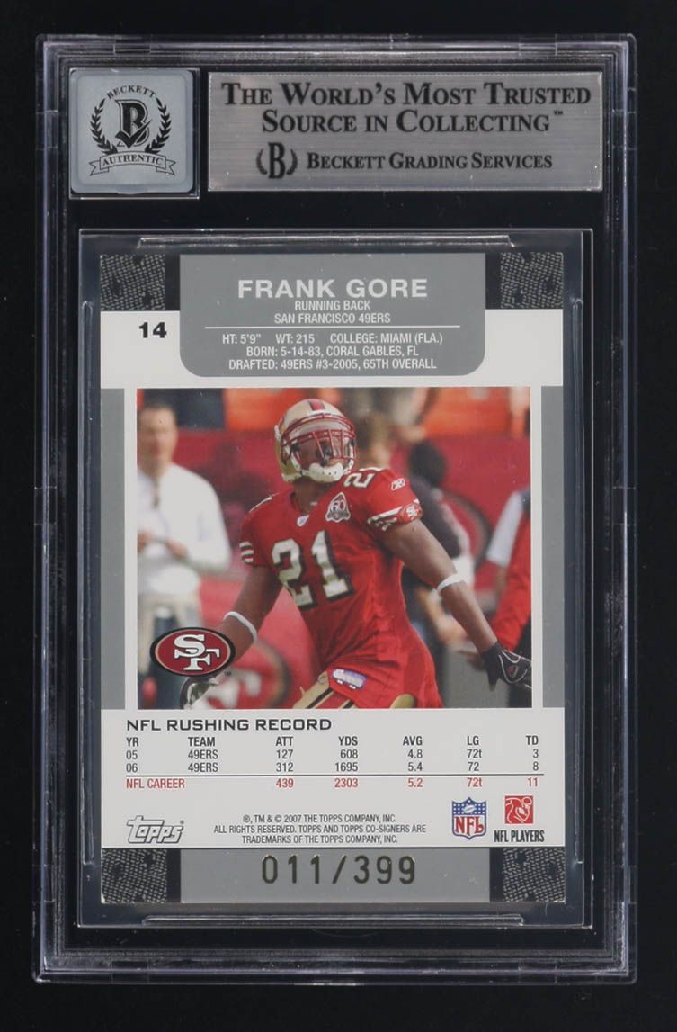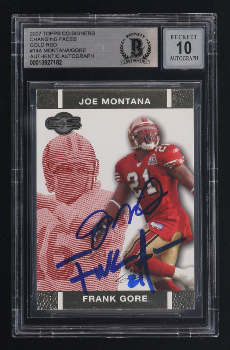 Joe Montana / Frank Gore Signed 2007 Topps Co-Signers Changing Faces Gold Red #14A #011/399 (BGS | Auto 10)
