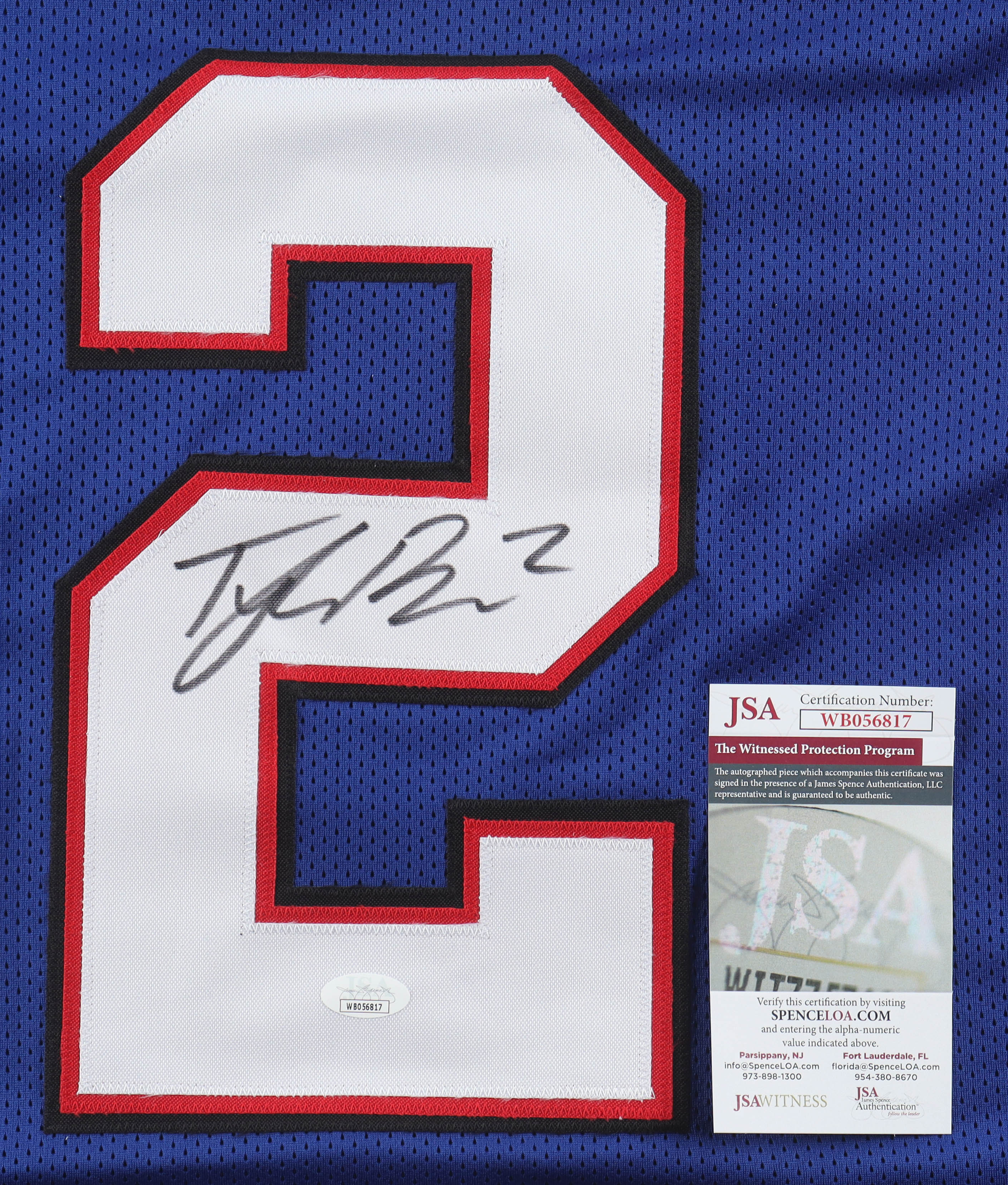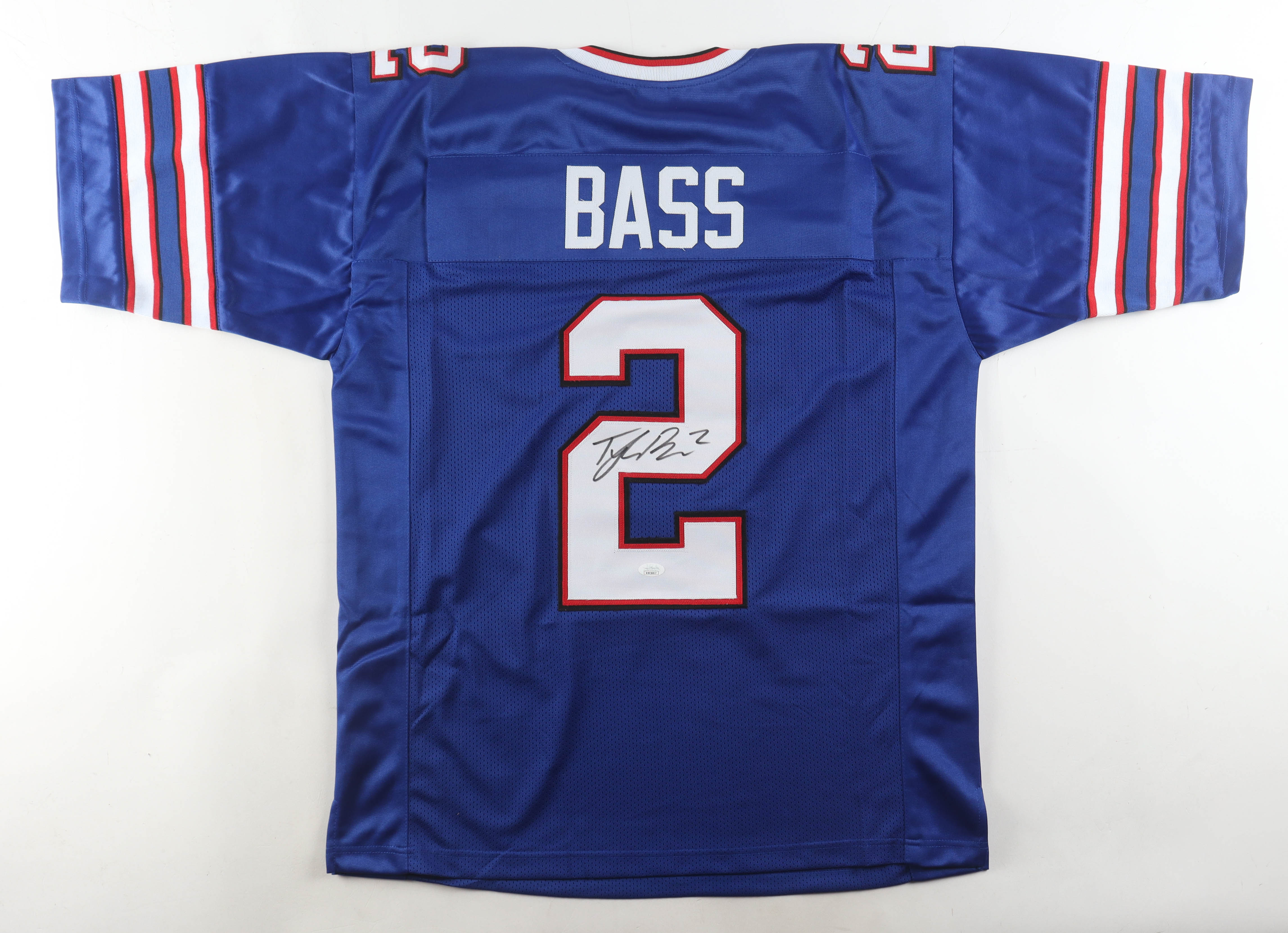 Custom jersey with everything sewn on, size XL. Hand-signed by Tyler Bass.