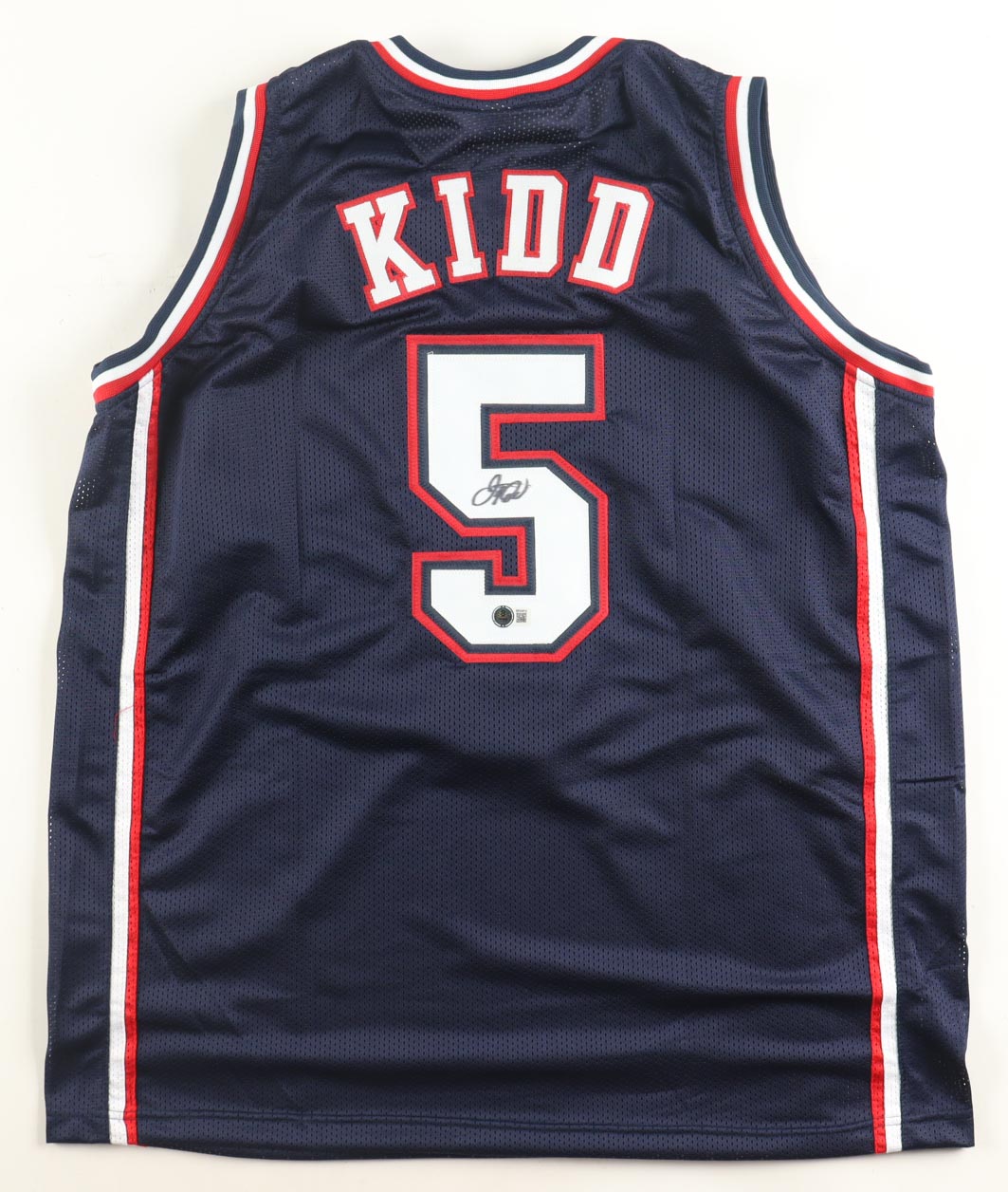 Custom jersey. Everything is sewn on, size XL. Hand-signed by Jason Kidd (HOF).