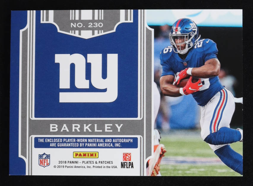 Saquon Barkley 2018 Panini Plates and Patches Blue #230 #30/50 JSY AU RC