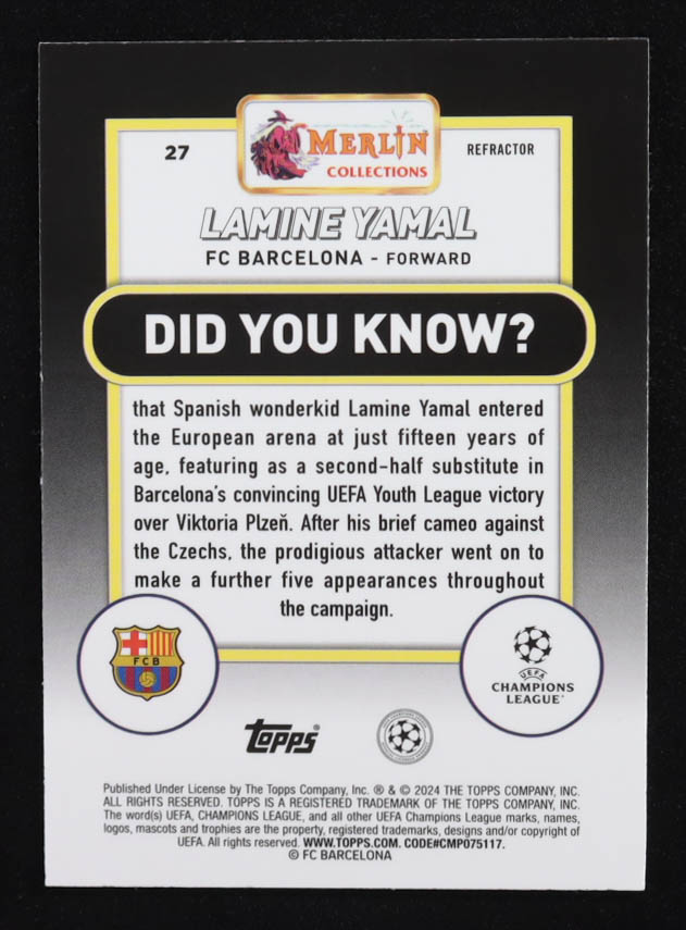 Lamine Yamal 2023-24 Merlin UEFA Club Competitions Refractors #27 RC