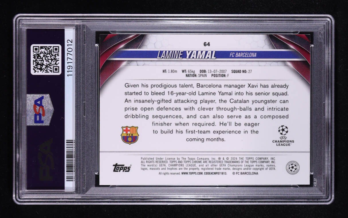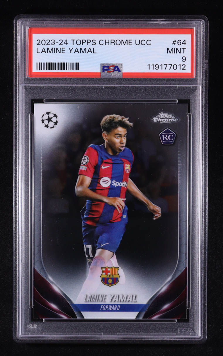 Lamine Yamal 2023-24 Topps Chrome UEFA Club Competitions #64 RC (PSA 9)