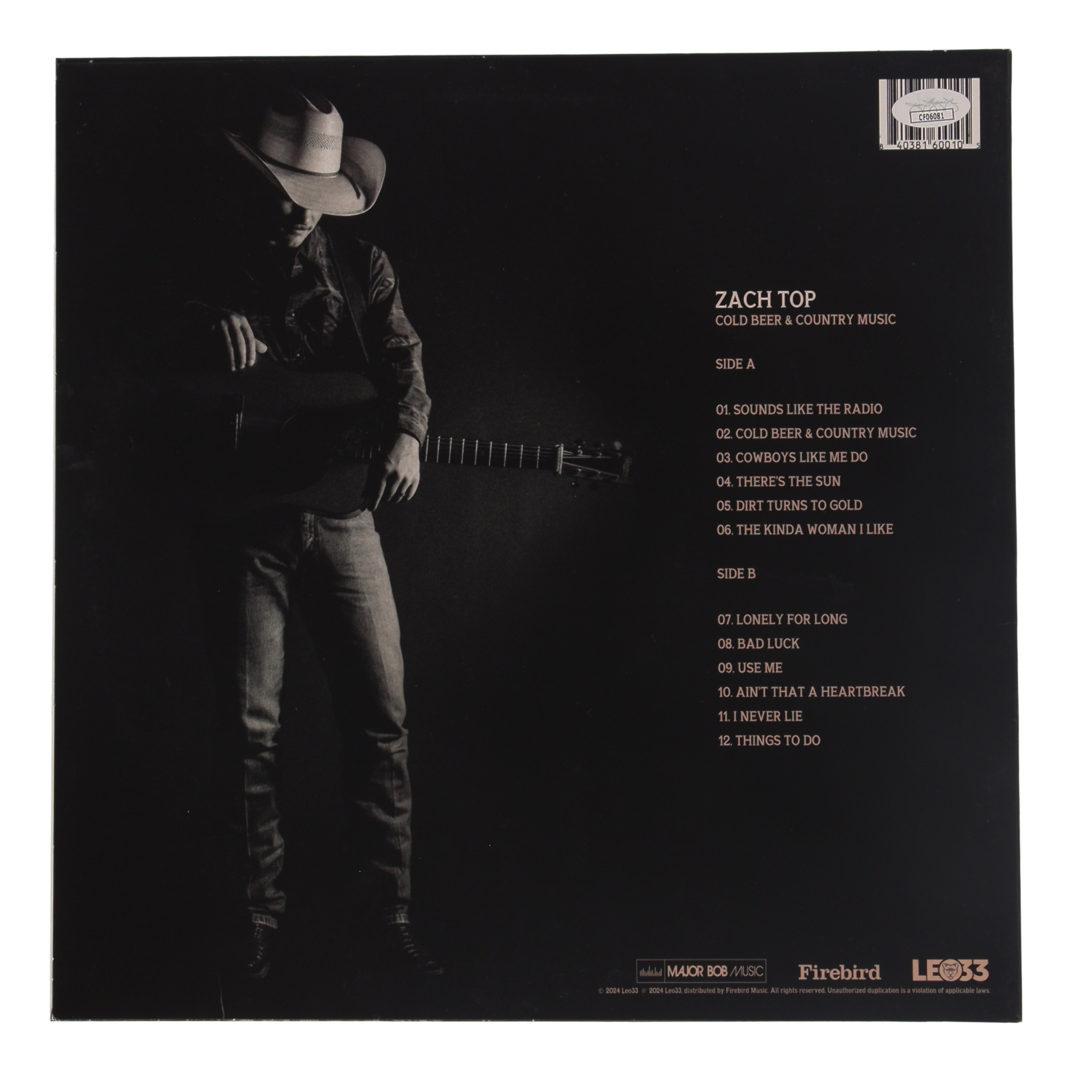 Zach Top Signed "Cold Beer and Country Music" Vinyl Record Album (JSA)