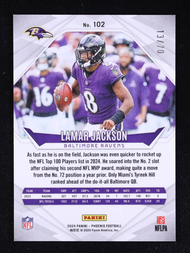 Lamar Jackson 2024 Panini Phoenix Blue Hyper #102 #13/70
