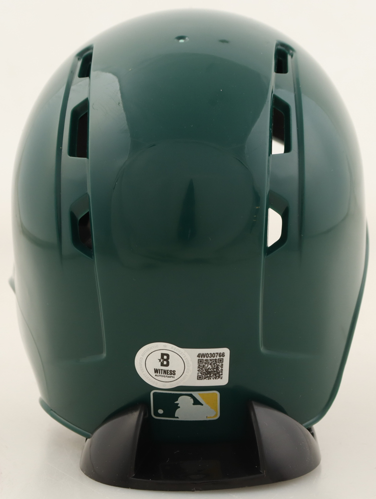 Rawlings Oakland Athletics mini batting helmet. Hand-signed and inscribed by Jose Canseco.