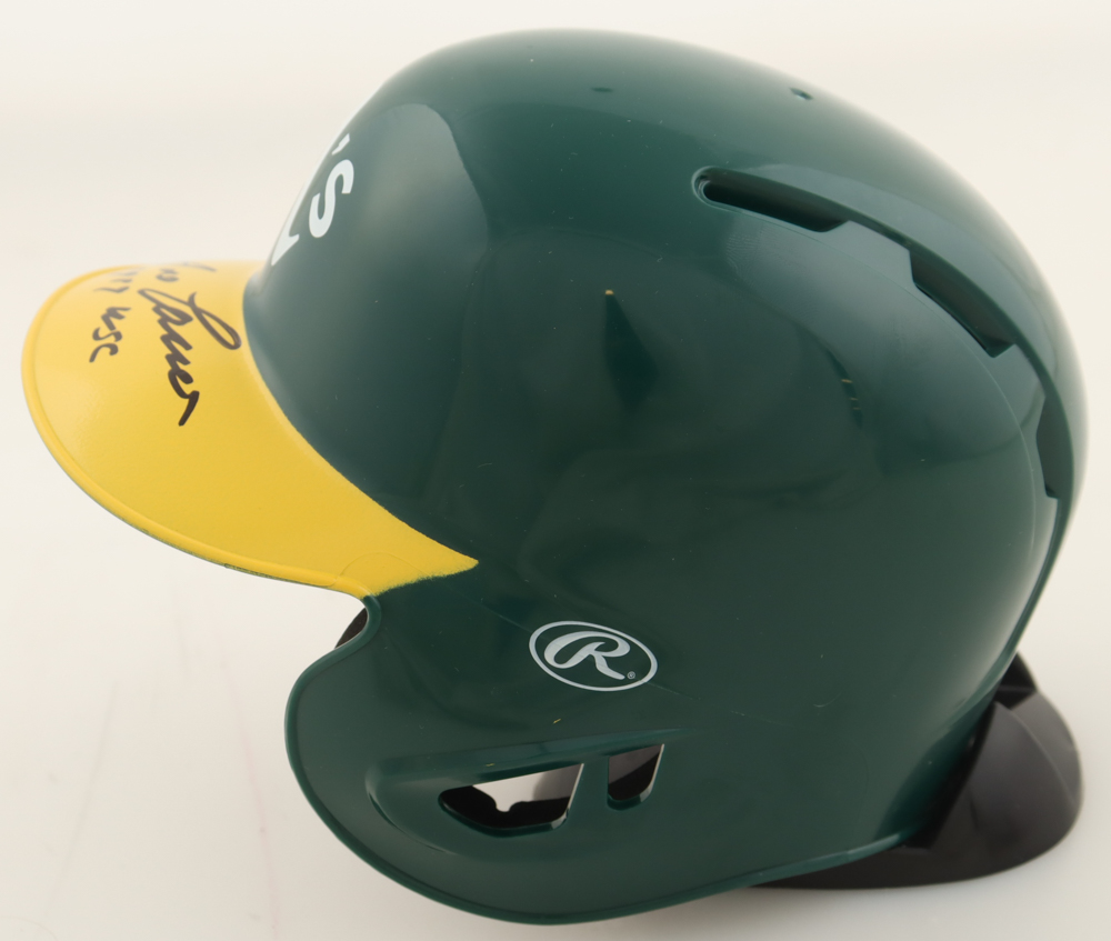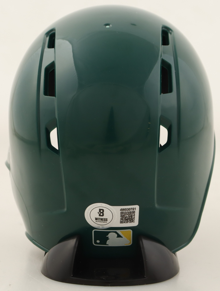 Rawlings Oakland Athletics mini batting helmet. Hand-signed and inscribed by Jose Canseco.