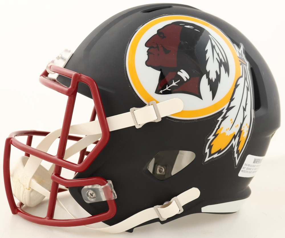 Riddell Washington Redskins Full-Size Flat Black Alternate Speed Replica Helmet. Hand-signed and inscribed by Joe Theismann. Please note, there is scuffing throughout the helmet.
