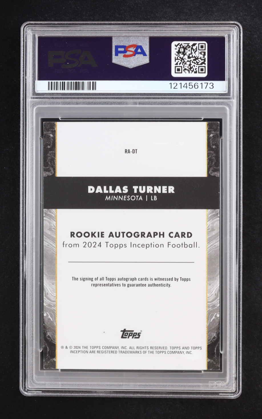Dallas Turner 2024 Topps Inception Rookie Autograph #RADT RC (PSA 8)