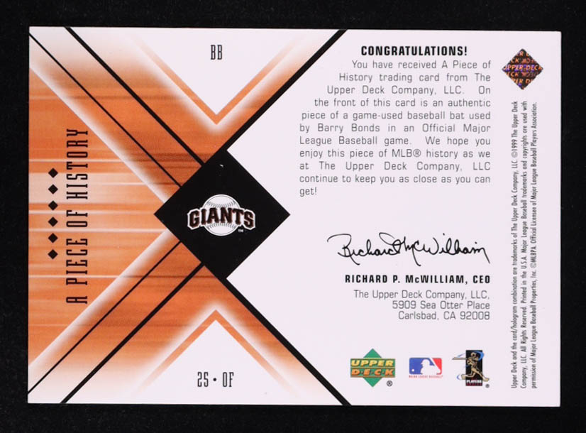 Barry Bonds 1999 Upper Deck Ovation A Piece of History #BB