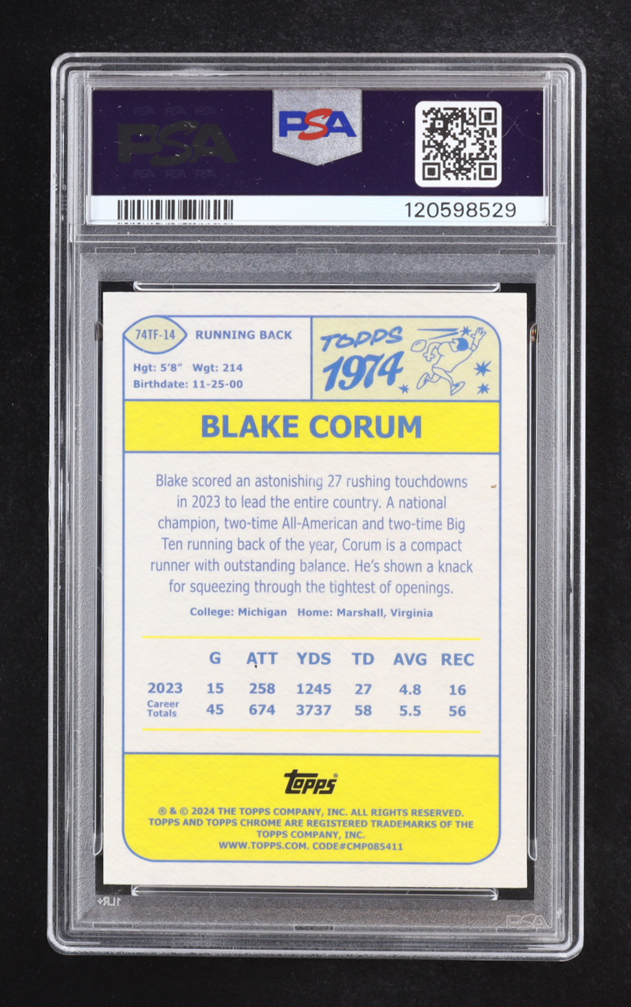 Blake Corum 2024 Topps Chrome '74 Topps Football X-Fractor #74TF14 RC (PSA 9)