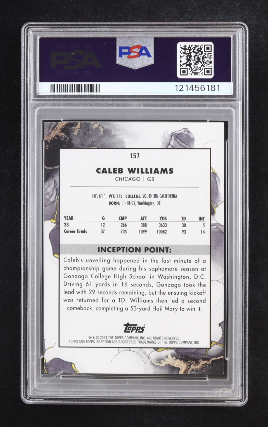 Caleb Williams 2024 Topps Inception #157 RC (PSA 9)