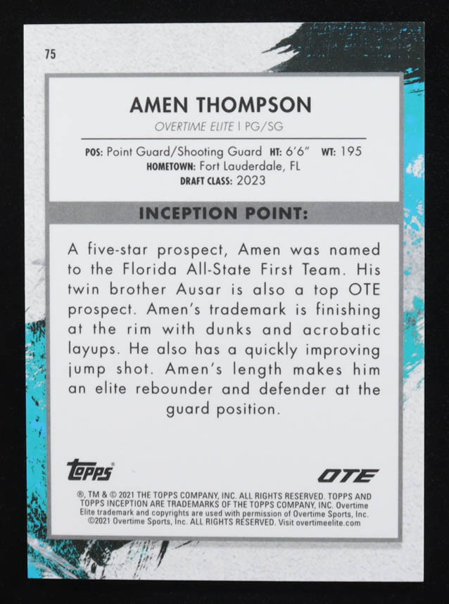 Amen Thompson 2021-22 Topps Inception Overtime Elite Blue #75 RC #36/199