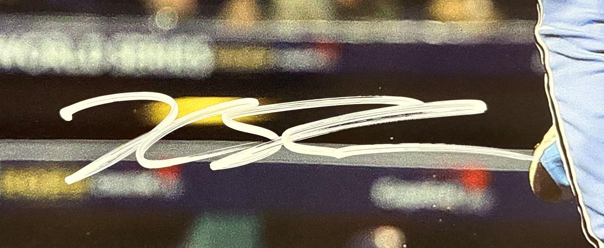 Photo measures 16” x 20” in size and has been hand-signed by Kyle Schwarber (Philadelphia Phillies).