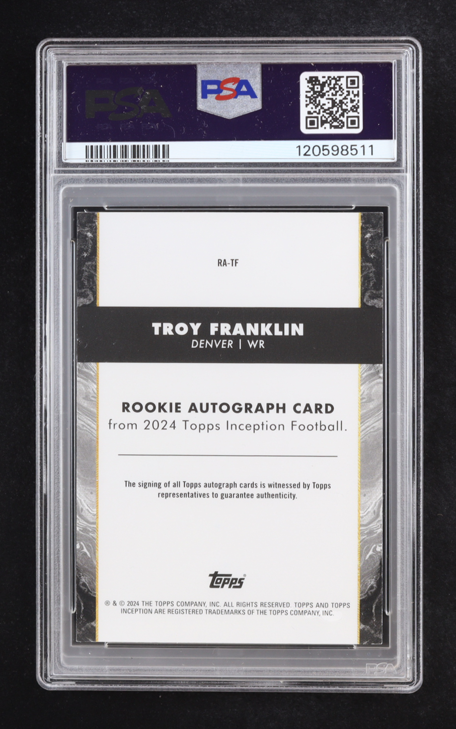 Troy Franklin 2024 Topps Inception Rookie Autograph Orange #RATF #48/50 RC (PSA 8)