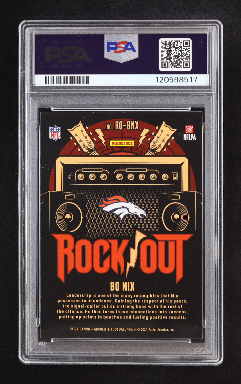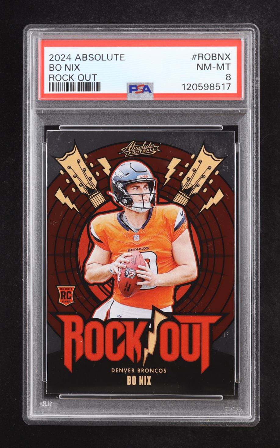 Bo Nix 2024 Absolute Rock Out #ROBNX RC (PSA 8)
