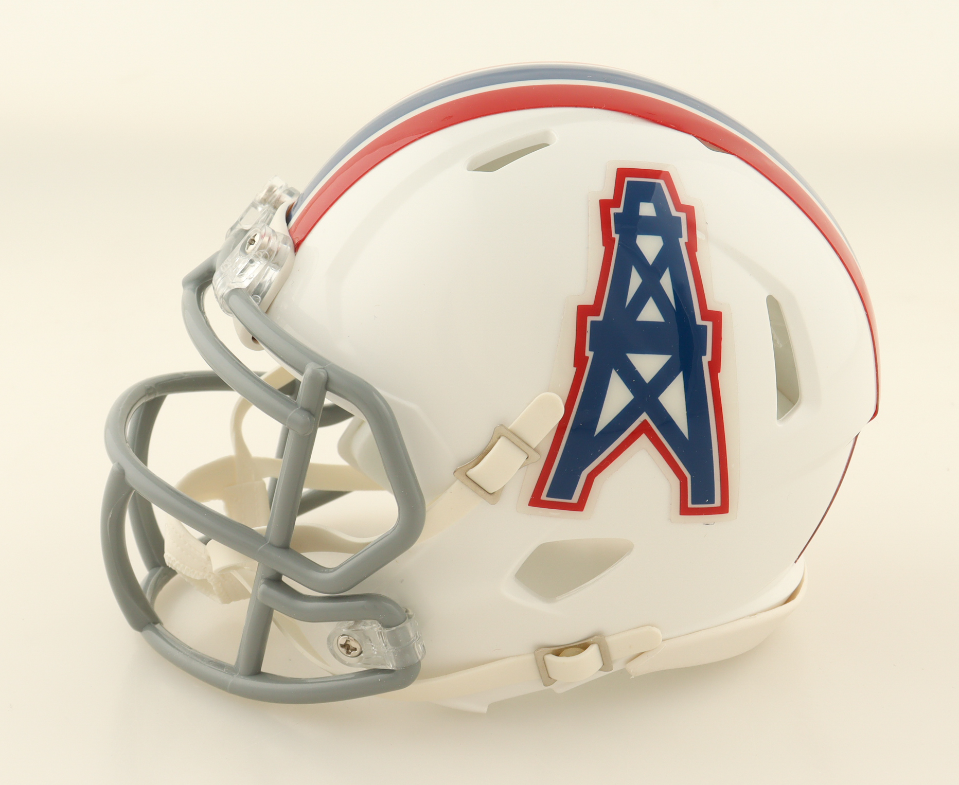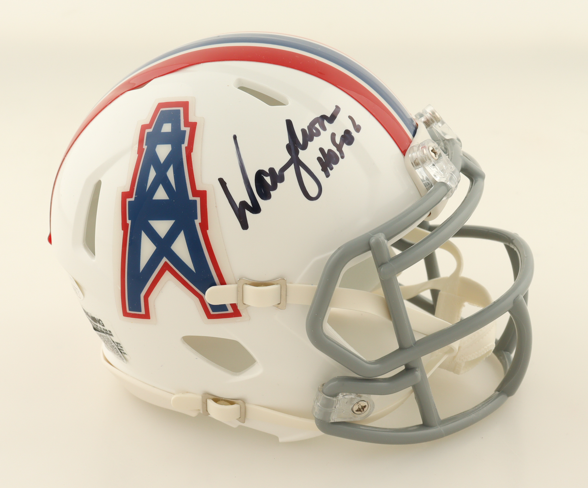 Riddell Houston Oilers speed mini helmet has been hand-signed and inscribed by Warren Moon (HOF).