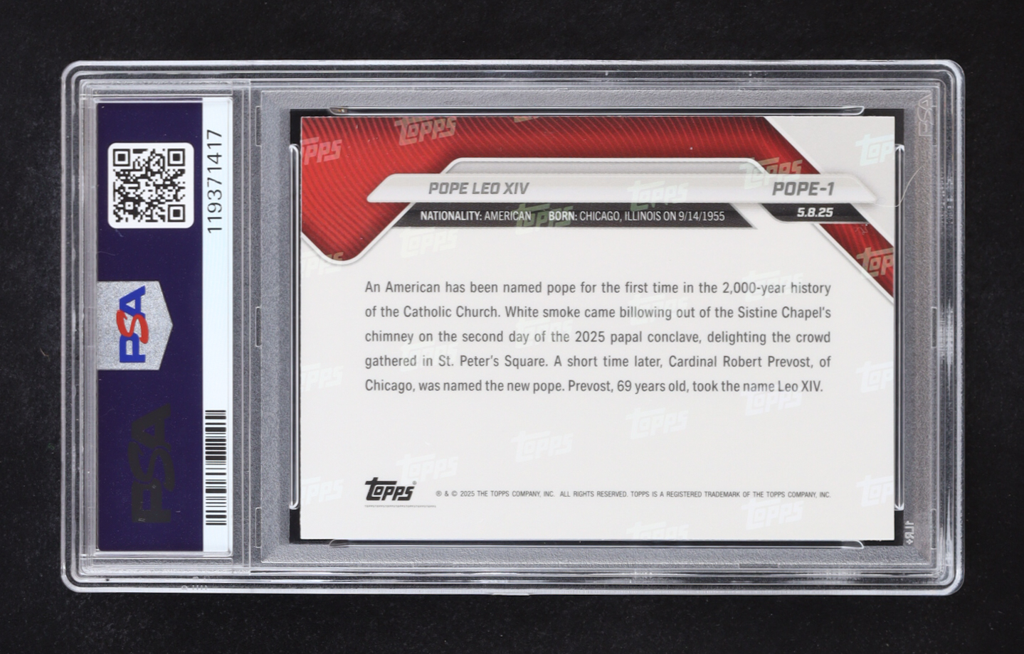 Pope Leo XIV 2025 Topps Now #POPE1 (PSA 10)