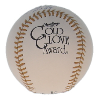 Rawlings Official Gold Glove Award Logo Baseball. Hand-signed and inscribed by Keith Hernandez (St. Louis Cardinals).