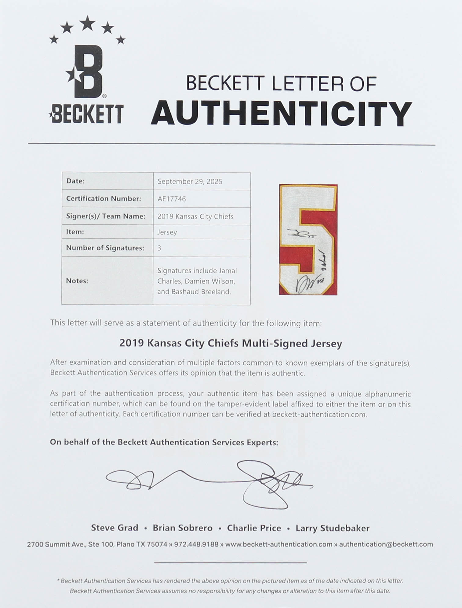 Jamaal Charles, Damien Wilson & Bashaud Breeland Signed "SB LIV Champions" Jersey (Beckett)