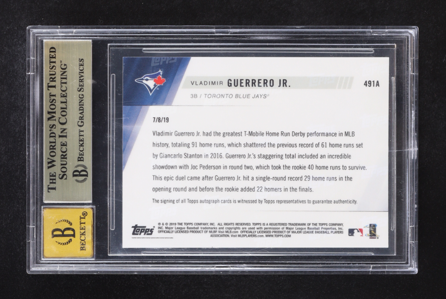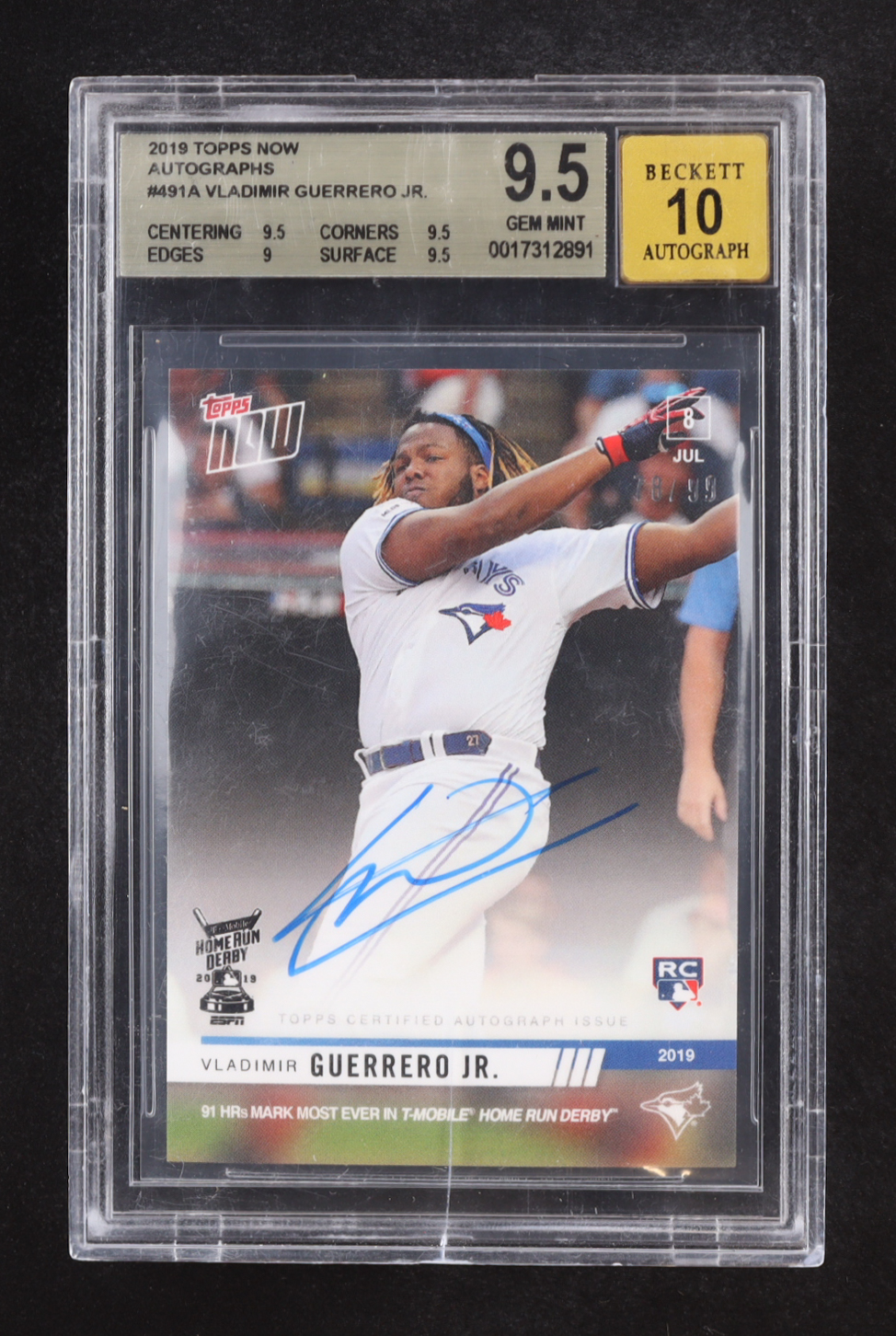 Vladimir Guerrero Jr. Signed 2019 Topps Now Autographs #491A RC #78/99 (BGS 9.5 | Auto Grade BGS 10)