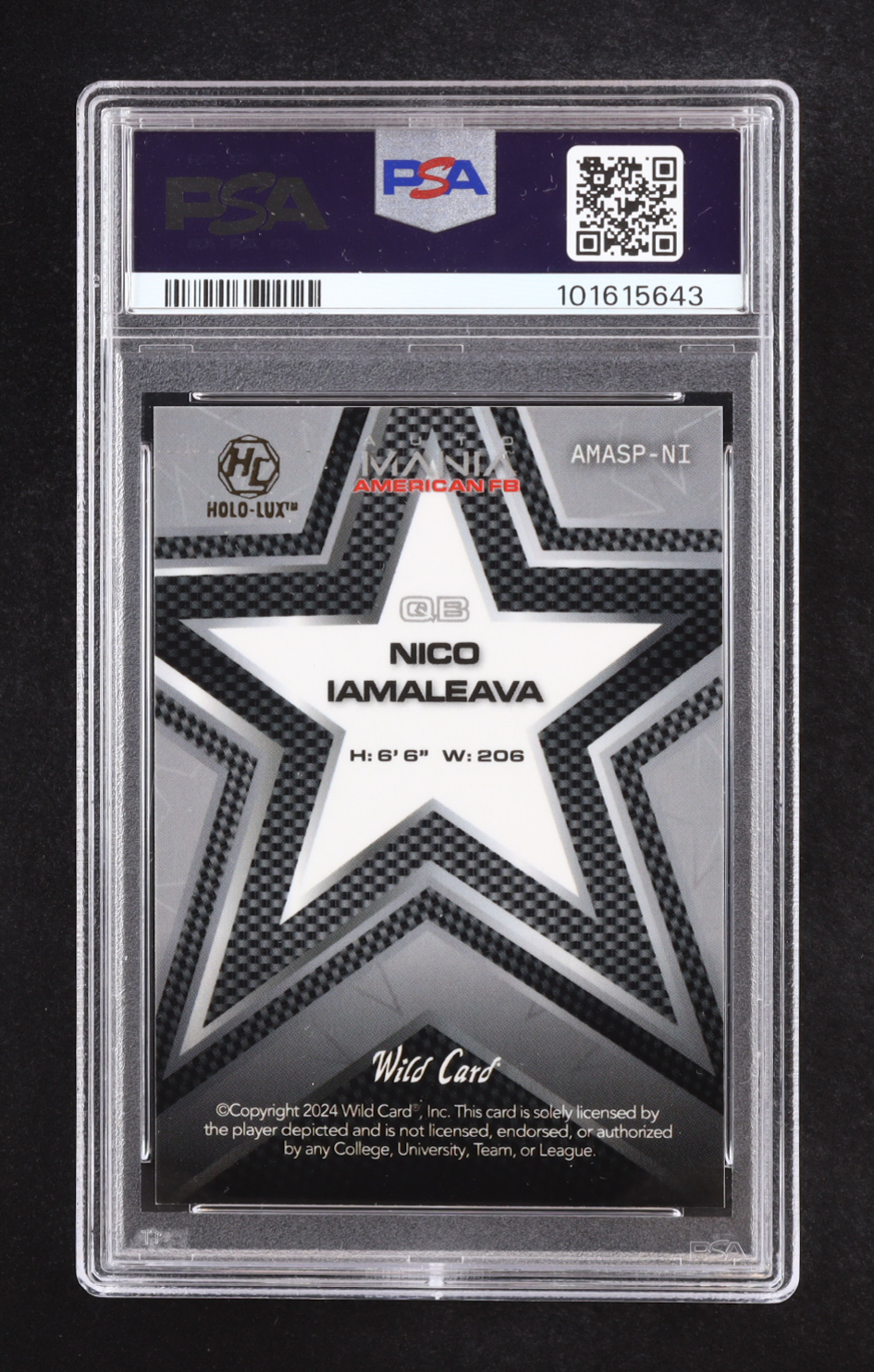 Nico Iamaleava Wild Card Auto Mania PV HLX Fighter Jets #AMASP-NI RC #1/1 (PSA 9)