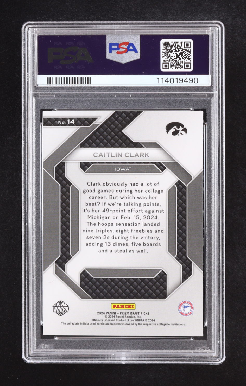 Caitlin Clark 2024 Panini Prizm Draft Picks New Recruits #14 RC (PSA 9)
