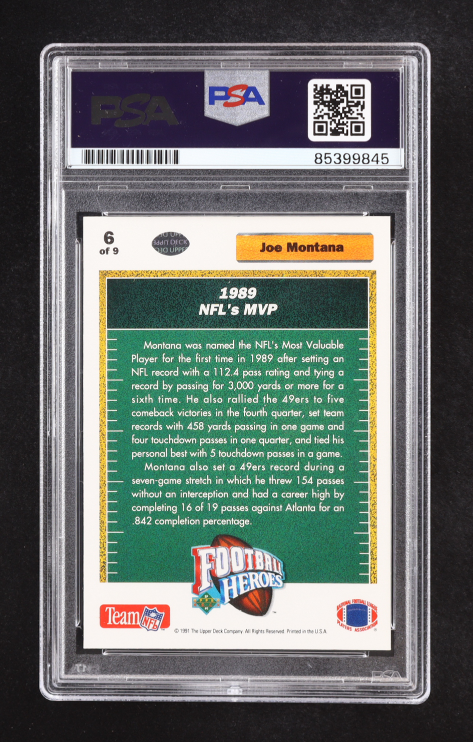 Joe Montana 1991 Upper Deck Football Heroes 1989 NFL's MVP #6 (PSA | Autograph Graded PSA Authentic)