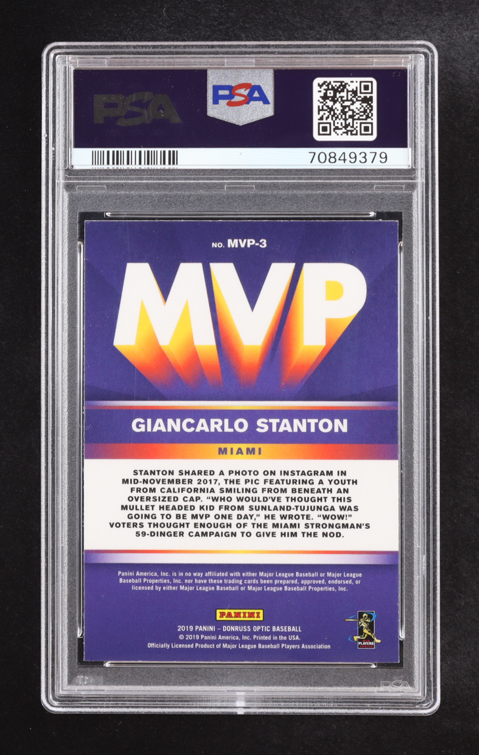Giancarlo Stanton 2019 Donruss Optic MVP #3 (PSA 10)