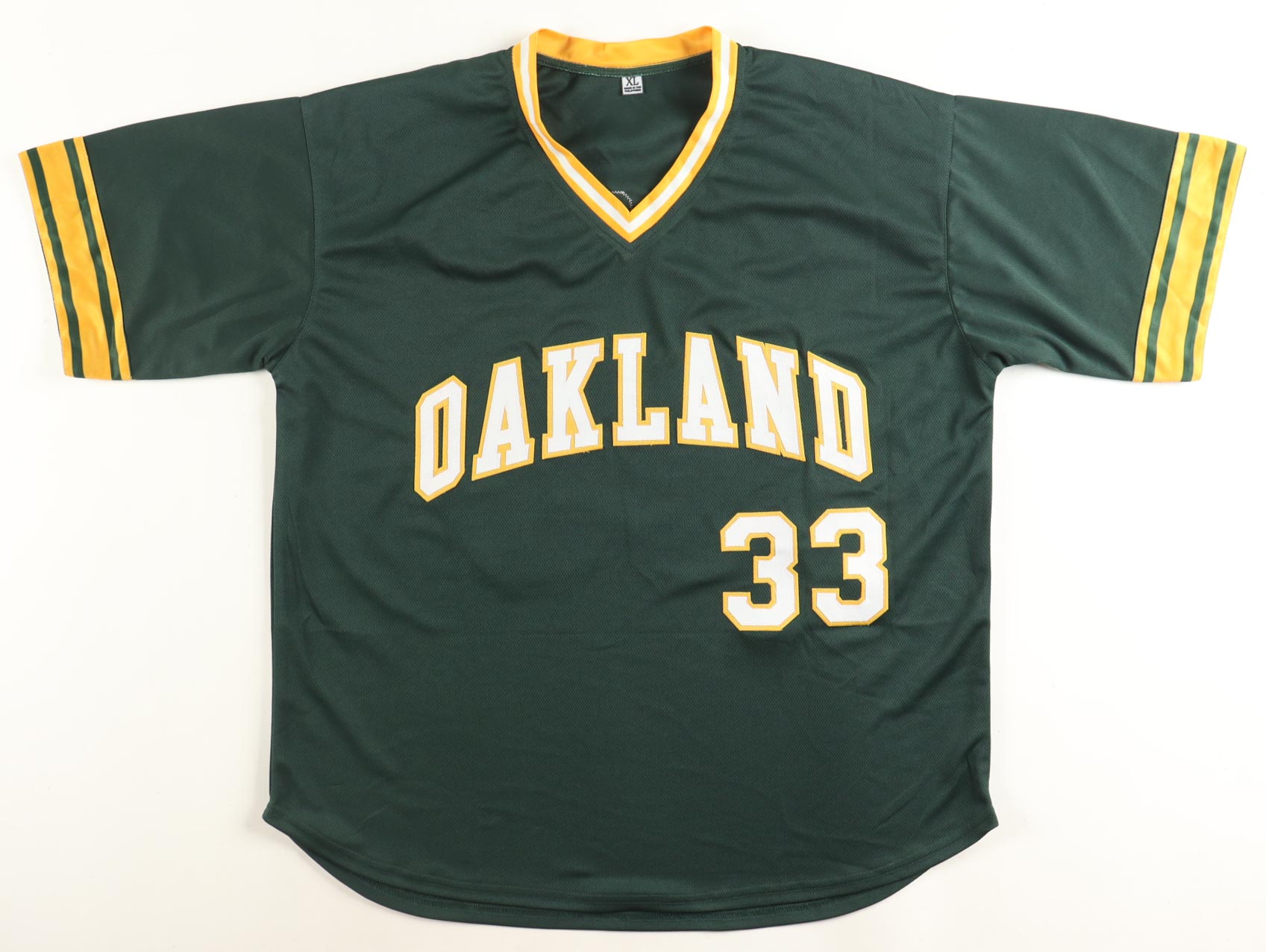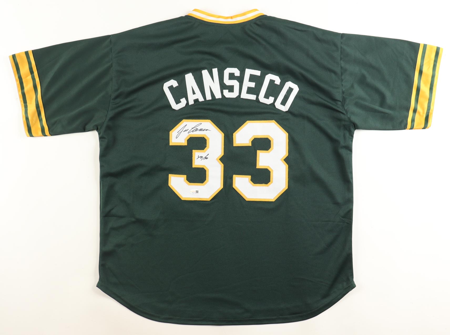 Custom jersey with everything sewn on, size XL. Hand-signed and inscribed by Jose Canseco.