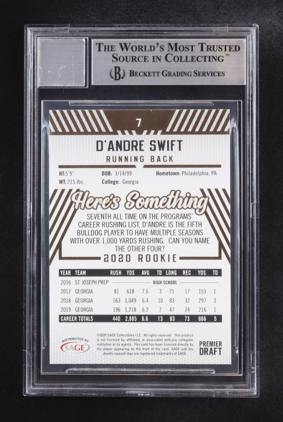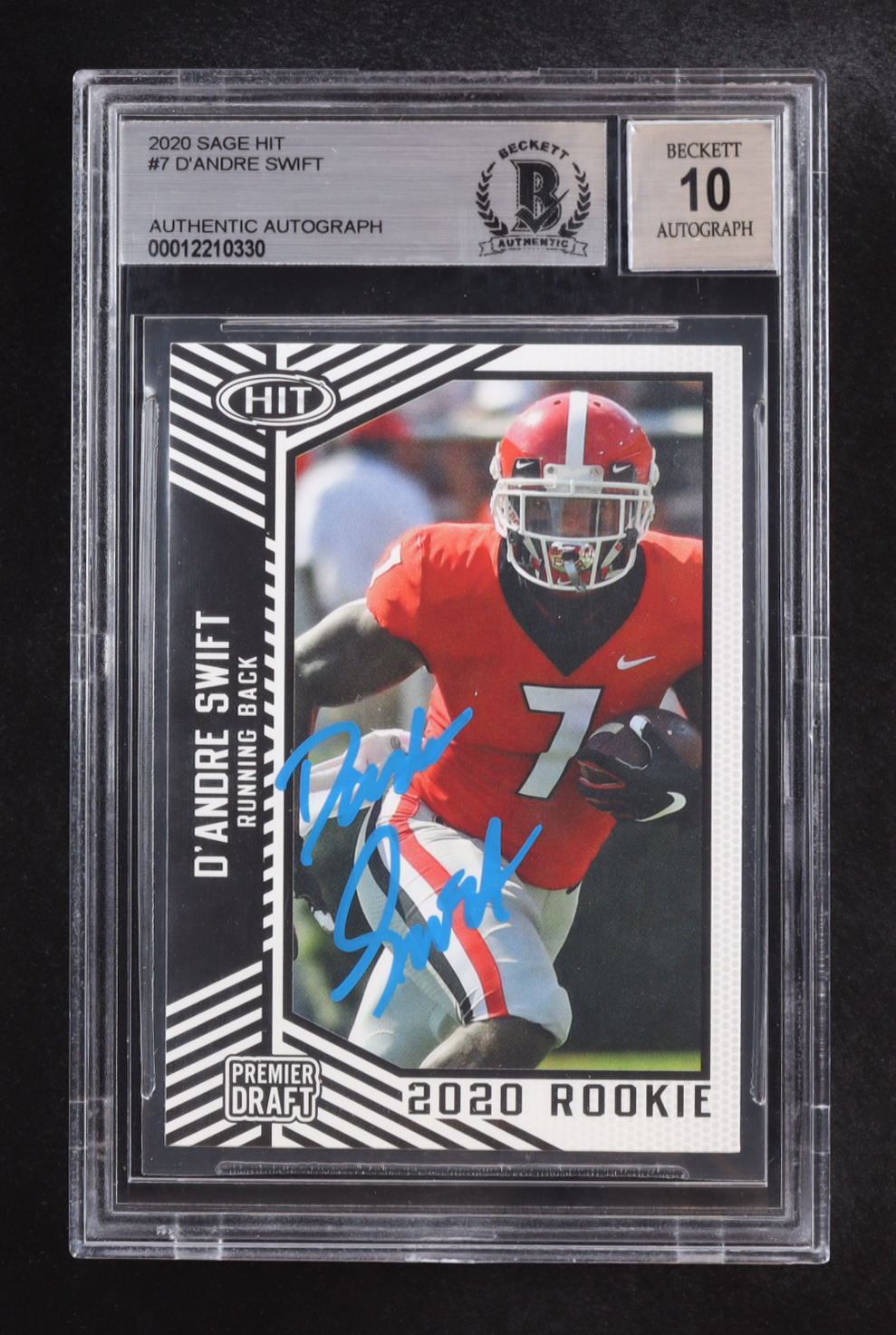 D'andre Swift Signed 2020 SAGE HIT #7 RC (Beckett | Auto Grade BGS 10)