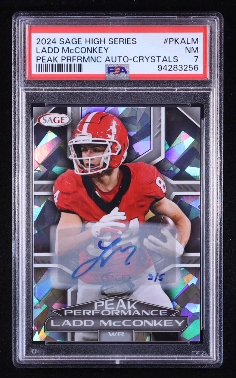 Ladd McConkey 2024 Sage High Series Peak Performance Auto Crystals (PSA 7)