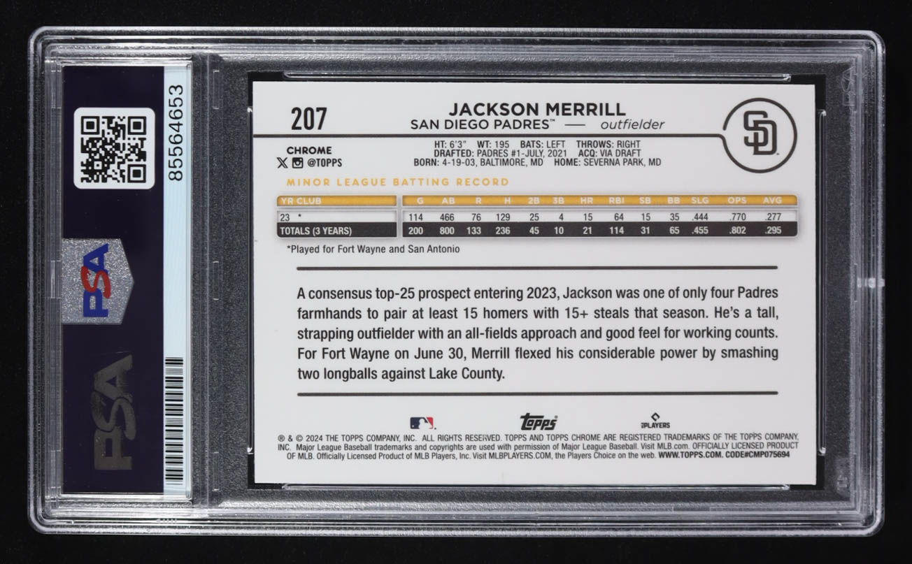 Jackson Merrill Signed 2024 Topps Chrome RayWave Refractor #207 RC (PSA)