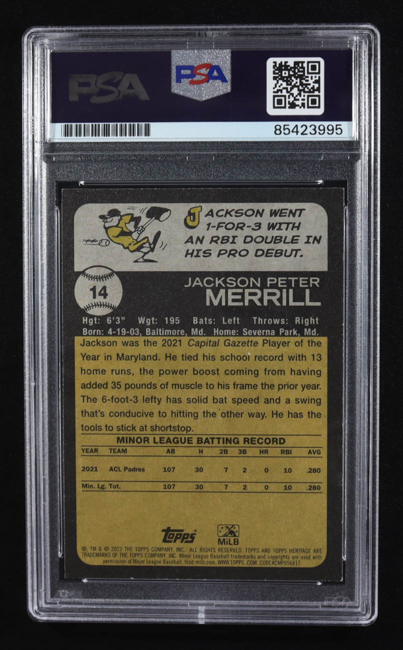 Jackson Merrill Signed 2022 Topps Heritage Minors #14 RC (PSA)