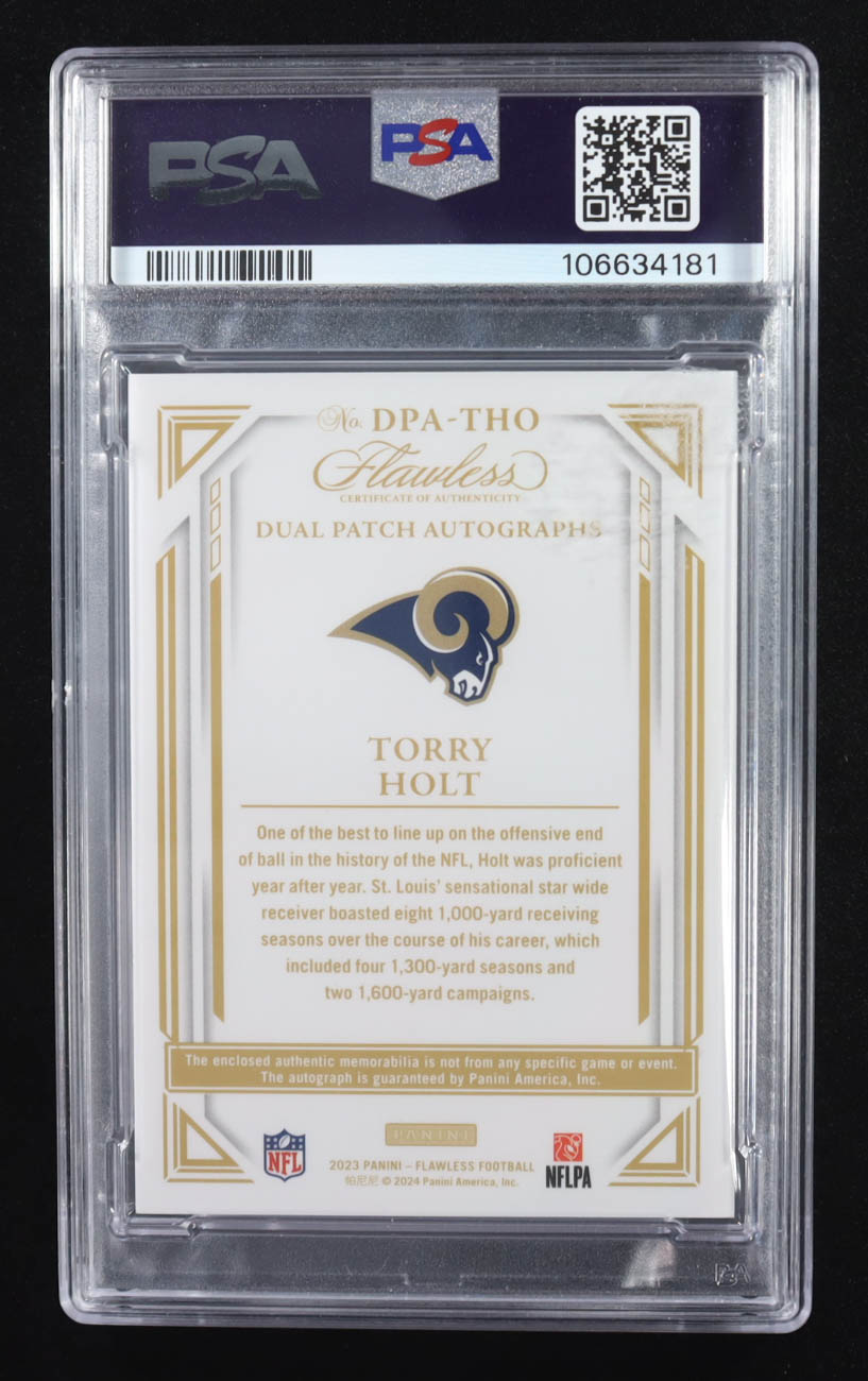 Torry Holt 2023 Panini Flawless Dual Patch Auto Bronze #DPATHO #1/6 (PSA 9 | Autograph Grade 10)