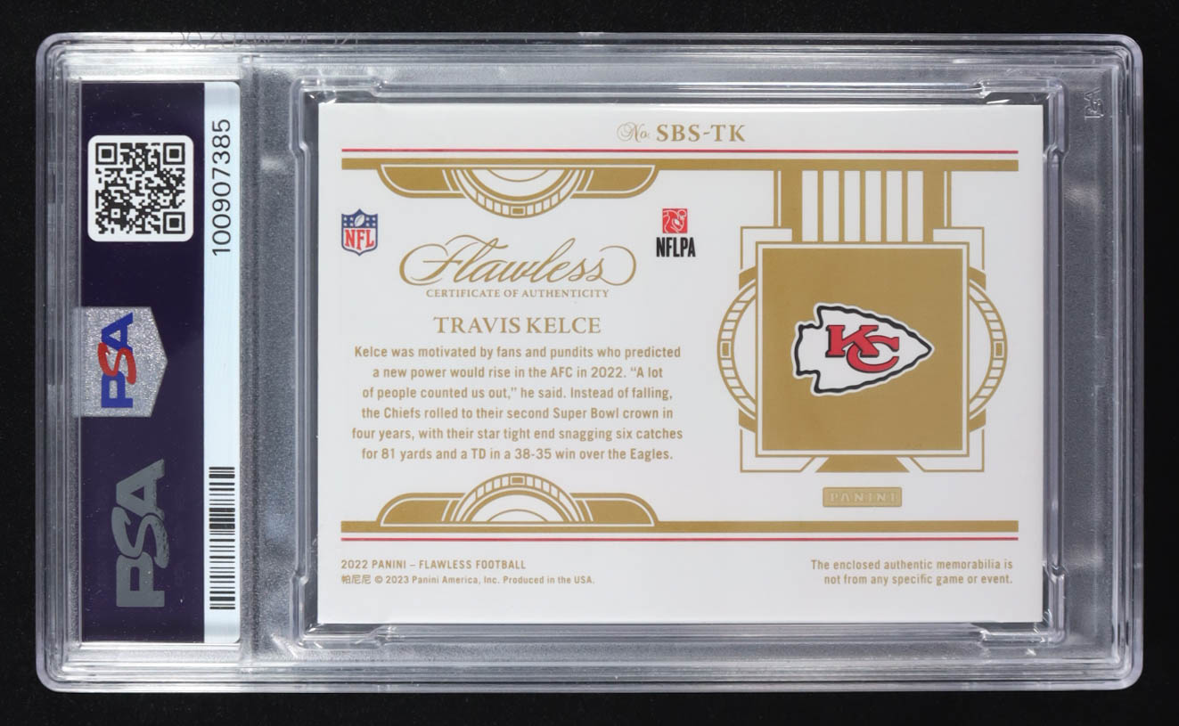 Travis Kelce 2022 Panini Flawless Super Bowl Swatch Auto Ruby #SBSTK #14/15 (PSA 10)