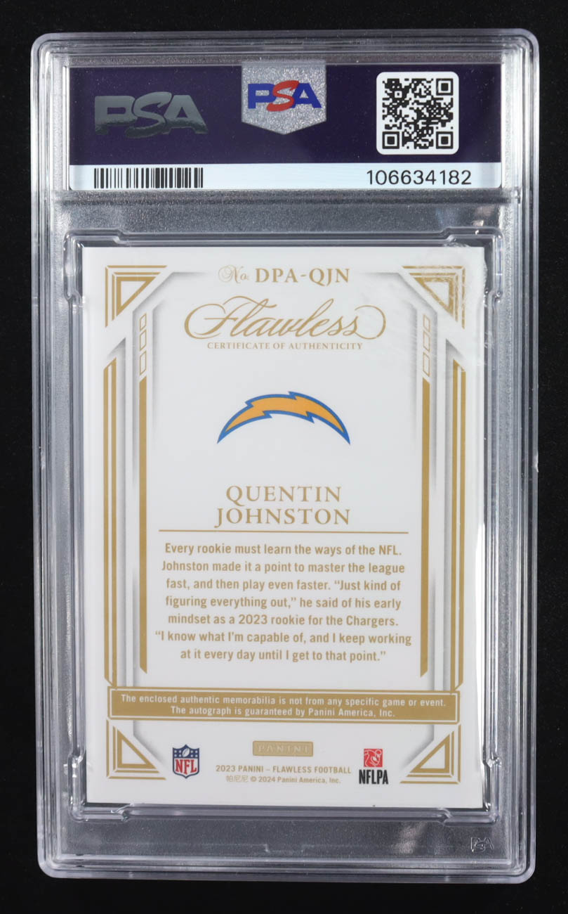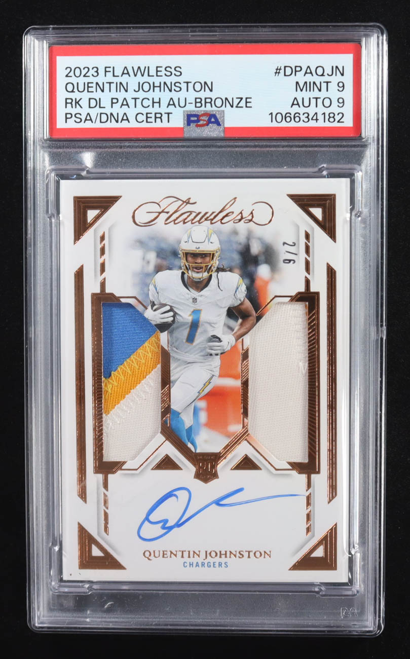 Quentin Johnston 2023 Panini Flawless Dual Patch Auto Bronze #DPAQJN RC #2/6 (PSA 9 | Autograph Grade 9)